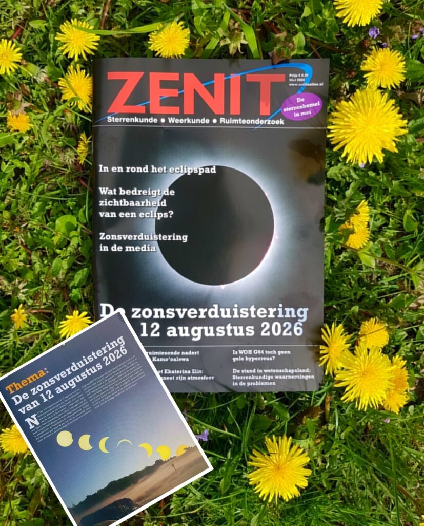 Op 9 mei 2026 vindt de jaarlijkse Algemene Leden Vergadering (ALV) van de KNVWS plaats in Den Dolder, waar vertegenwoordigers van vele lidorganisaties elkaar zullen ontmoeten. In dit KNVWS-jubileumjaar vindt in onze contreien toevalligerwijs ook een grote gedeeltelijke zonsverduistering plaats, 12 augustus aanstaande. Voor de vereniging is deze grootste eclips in de afgelopen 27 jaar een reden om er veel extra aandacht aan te besteden. Het mei-nummer van Zenit staat vol informatie over de komende zon-eclips, zowel astronomisch als weerkundig van aard.