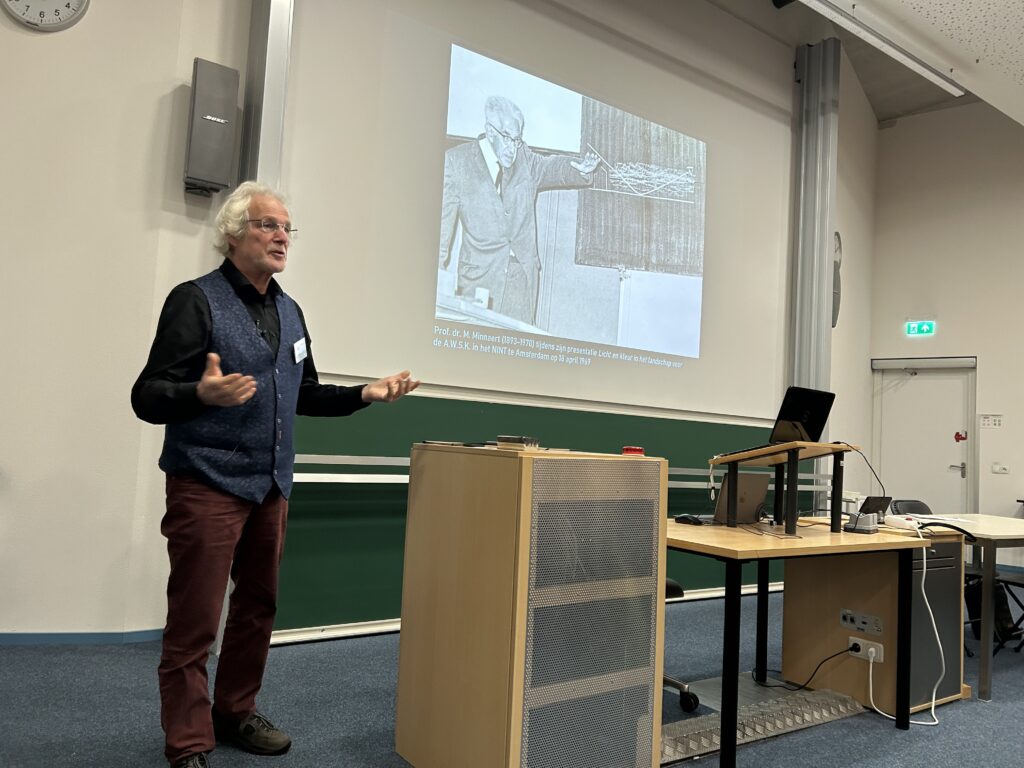 Daarna volgde de eerste feestelijke mijlpaal van de dag: de uitreiking van de Dr. J. van der Biltprijs 2025 aan beeldend kunstenaar en chroniqueur Peter Paul Hattinga Verschure, dé expert van optische verschijnselen in Nederland. Toen het KNMI eind jaren zestig stopte met hun registratie, zette hij die traditie voort met een eigen meldpunt, waarmee hij een uniek archief opbouwde van halo’s, bijzonnetjes en lichtzuilen.